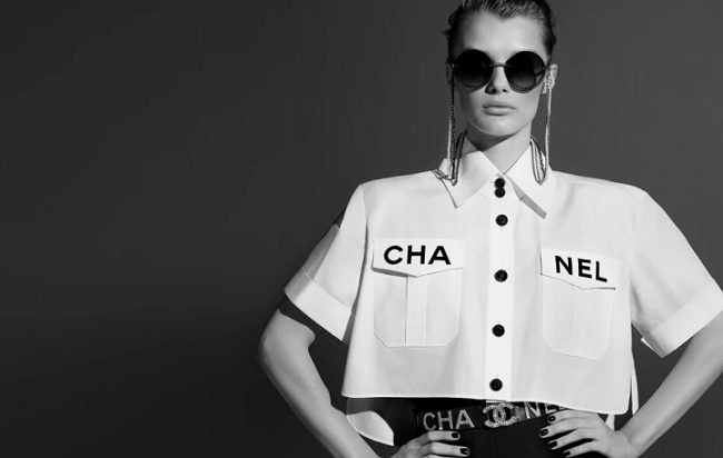 Chiếc áo sơ mi croptop thuộc BST Chanel Xuân - Hè 2019 được chân dài Kaia Gerber khoác trên mình sải bước trên sàn runway hồi năm ngoái