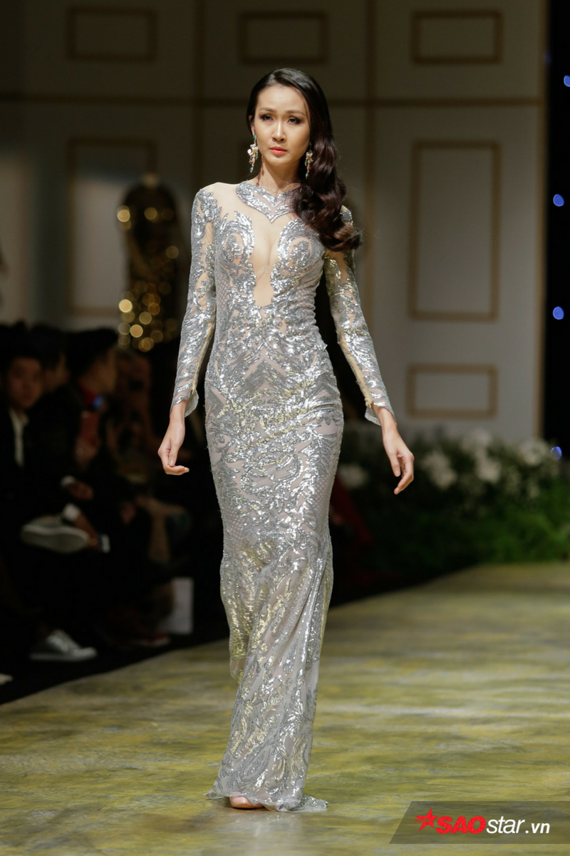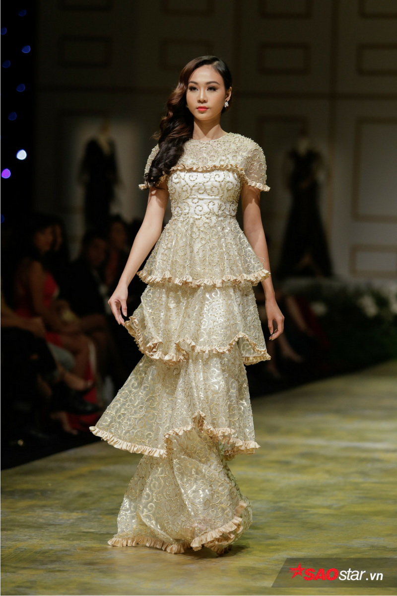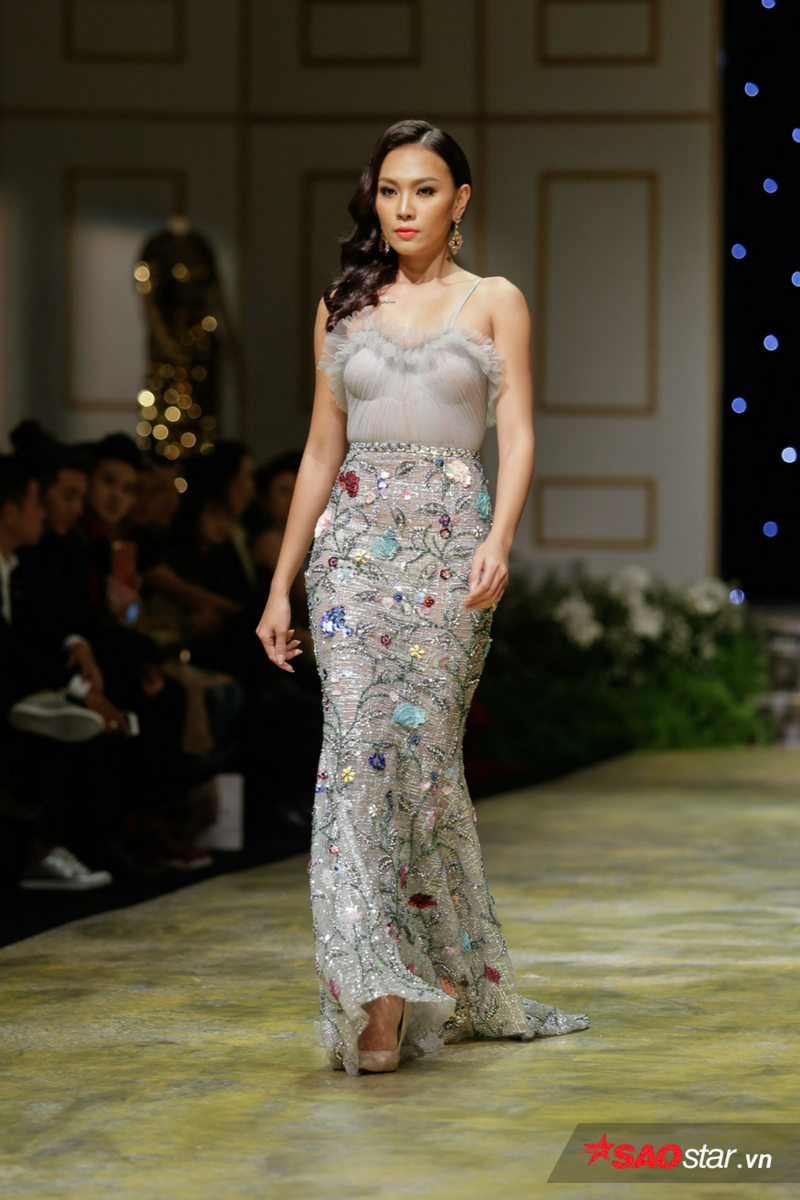 Nguyễn Thị Loan cũng góp mặt trình diễn bộ sưu tập này của NTK Đức Vince.