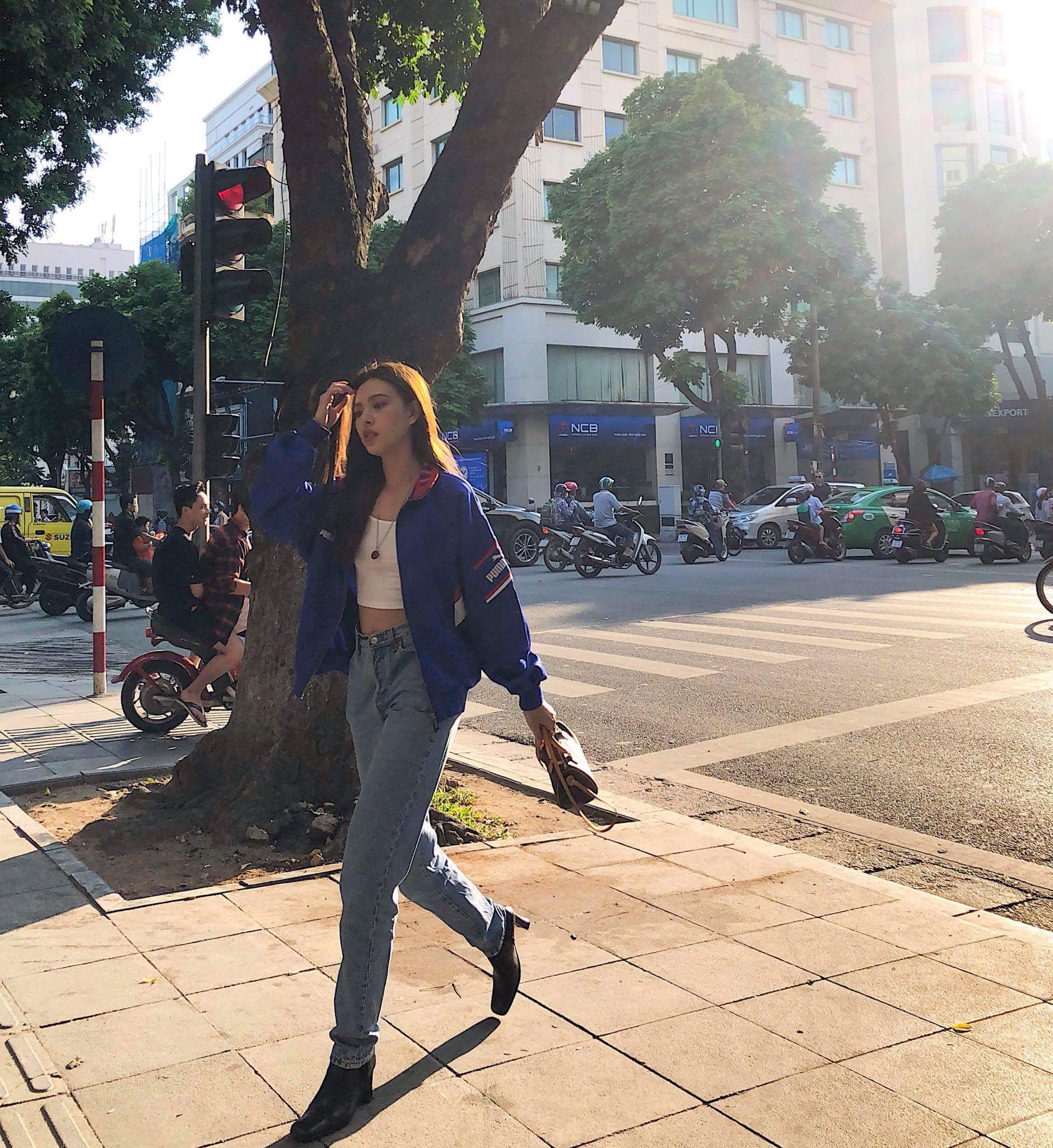 Tăng Thanh Hà tiếp tục hút fan cùng outfit “kín như bưng” nhưng vẫn hết sức nổi bật. Combo áo phông, quần jeans ôm và áo vest kẻ ca-rô tuy quen thuộc nhưng chưa bao giờ hết “hot”.