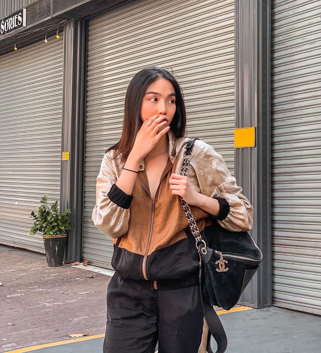 Cách mix của chân dài có chút thiên hướng gợi cảm, cùng rất nhiểu phụ kiện đi kèm.