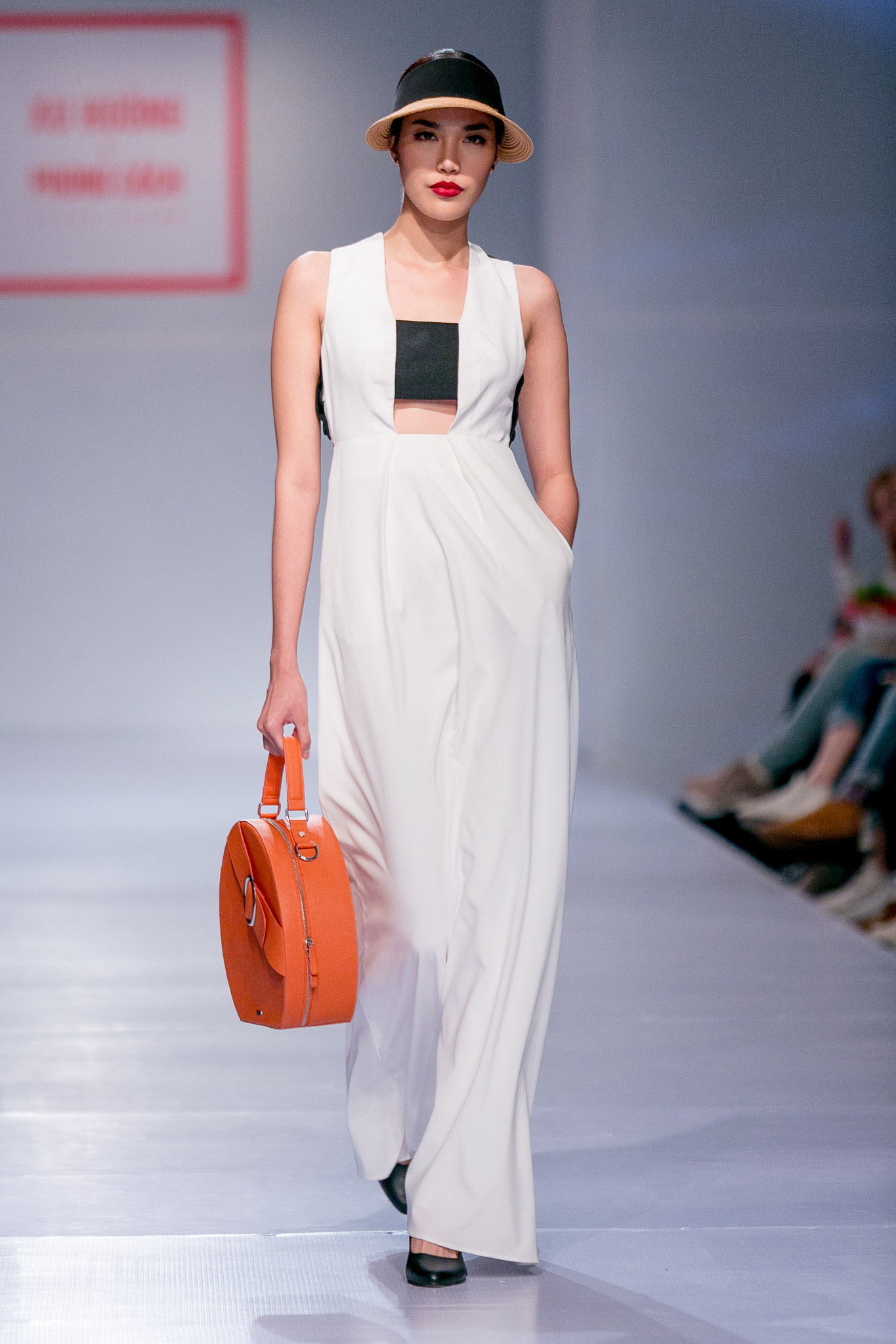 Các thiết kế sẽ vô cùng biến hóa cho nhiều hoàn cảnh khác nhau nếu được mix match sáng tạo. Trên sàn diễn, có thể thấy những kết hợp cho dạo phố như áo lưng cut-out tà rộng mặc cùng quần lửng, túi hộp chữ nhật và mũ rộng vành.