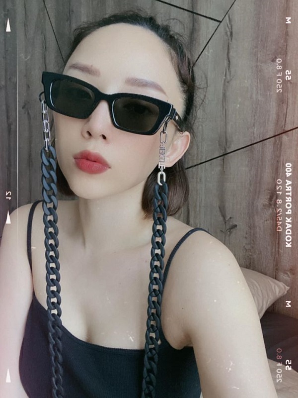 Lan Khuê cũng nhanh chóng bắt kịp xu hướng, dù người đẹp không mua trong BST của Jennie nhưng cô cũng mua thiết kế cùng hãng . Gọng kính tròng to và dày hơn cùng chi tiết dây tòng teng sau vành tai trông bà mẹ một con vô cùng sành điệu