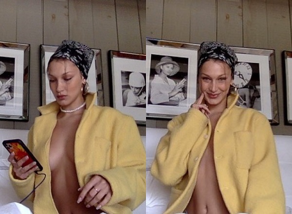 Trong thời gian cách ly xã hội, chân dài Bella Hadid từng diện kiểu áo hở vòng một quyến rũ đầu quấn kiểu khăn turban đầy thu hút