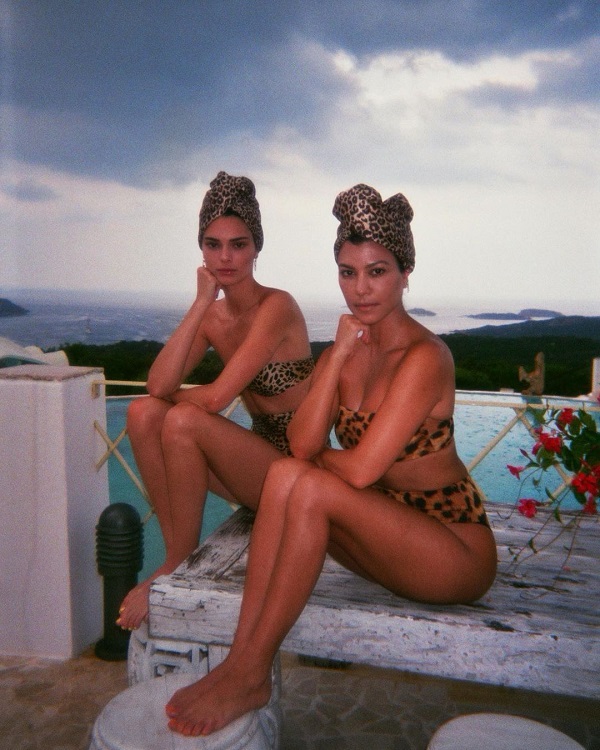 Kendall Jenner và chị gái quấn khăn turban kiểu đội đầu matching với bộ bikini với họa tiết da beo