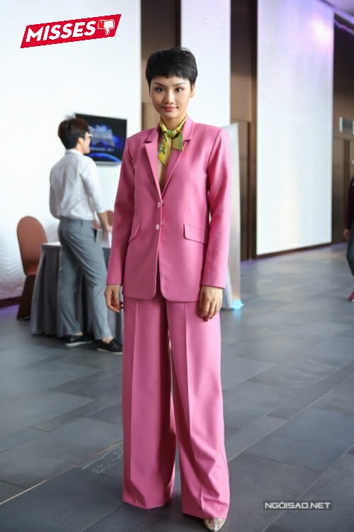 Mốt suits không nội y thì đang rất thời thượng rồi! Thế nhưng Miu Lê lại là minh chứng cho thấy đây là kiểu xu hướng không phải ai diện cũng đẹp. Nữ ca sĩ trở nên lọt thỏm trong bộ cánh quá rộng, tông hồng từ đầu đến chân cũng góp phần làm cho cô nàng trở nên sến súa.