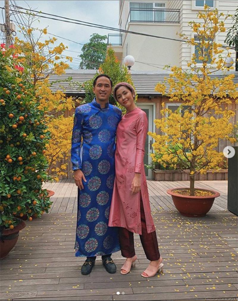 Mới đây, cô nàng vừa khiến mọi người thích thú không ngớt khi đăng tải bức ảnh chụp cùng chồng, trong đó cả hai đều diện áo dài, dựa đầu tình tứ vào nhau.
