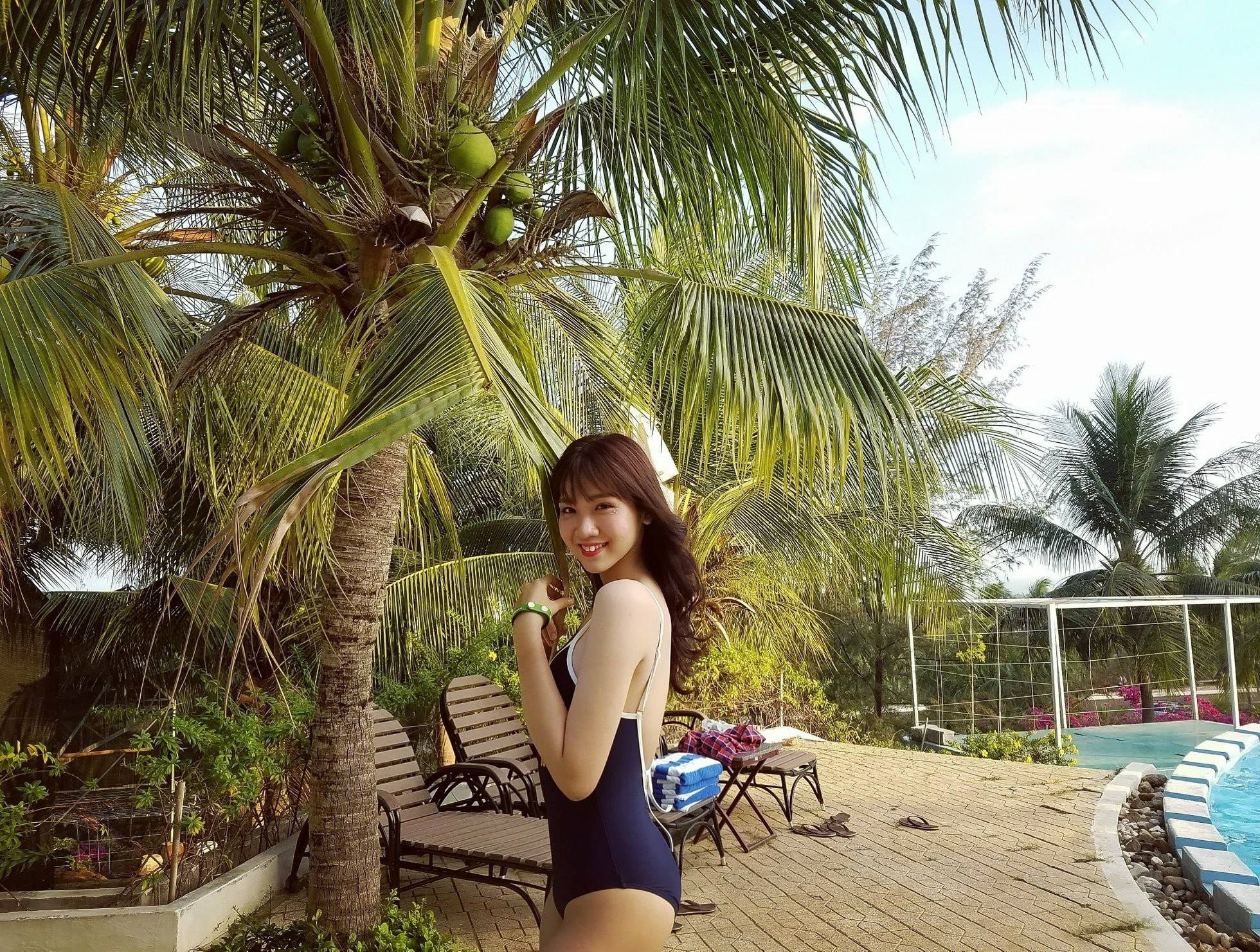 Nhật Hà gợi cảm trong mẫu monokini màu xanh tím than