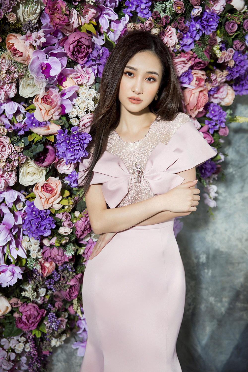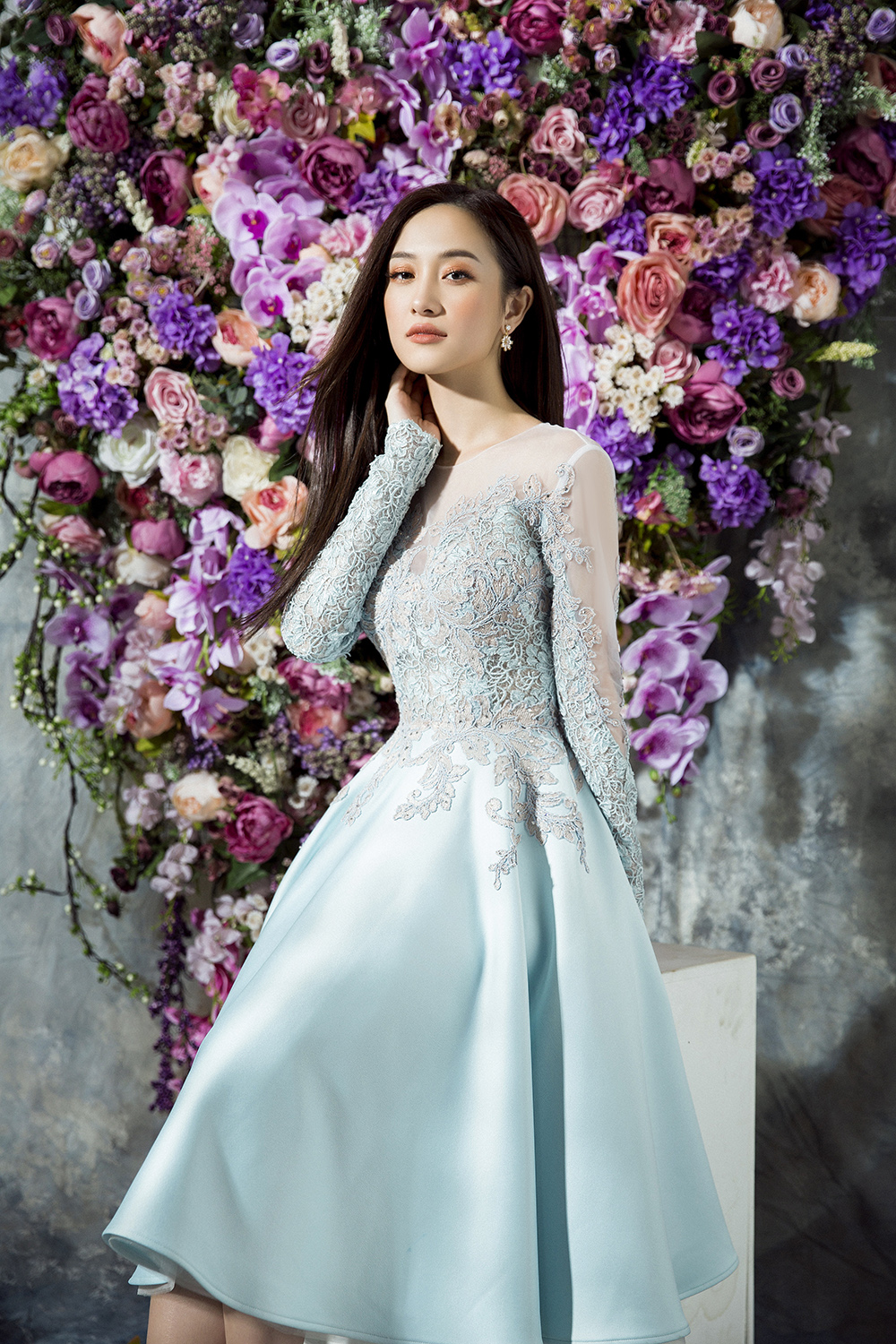 Hầu hết các trang phục đều chọn tông màu pastel như hồng thạch anh, xanh baby hoặc phối đen - trắng tối giản để tạo vẻ thanh lịch cho người đẹp sinh năm 1995. NTK Đỗ Long thể hiện kỹ thuật tinh tế của mình bằng cách ghép phối nhiều nền vải, từ vải trơn, ánh bạc, ren và xuyên thấu. Anh vẫn ưu ái với các phụ liệu kim sa, hoa vải, nơ to bản 3D nhằm tăng vẻ đẳng cấp và giá trị thời trang cho trang phục.