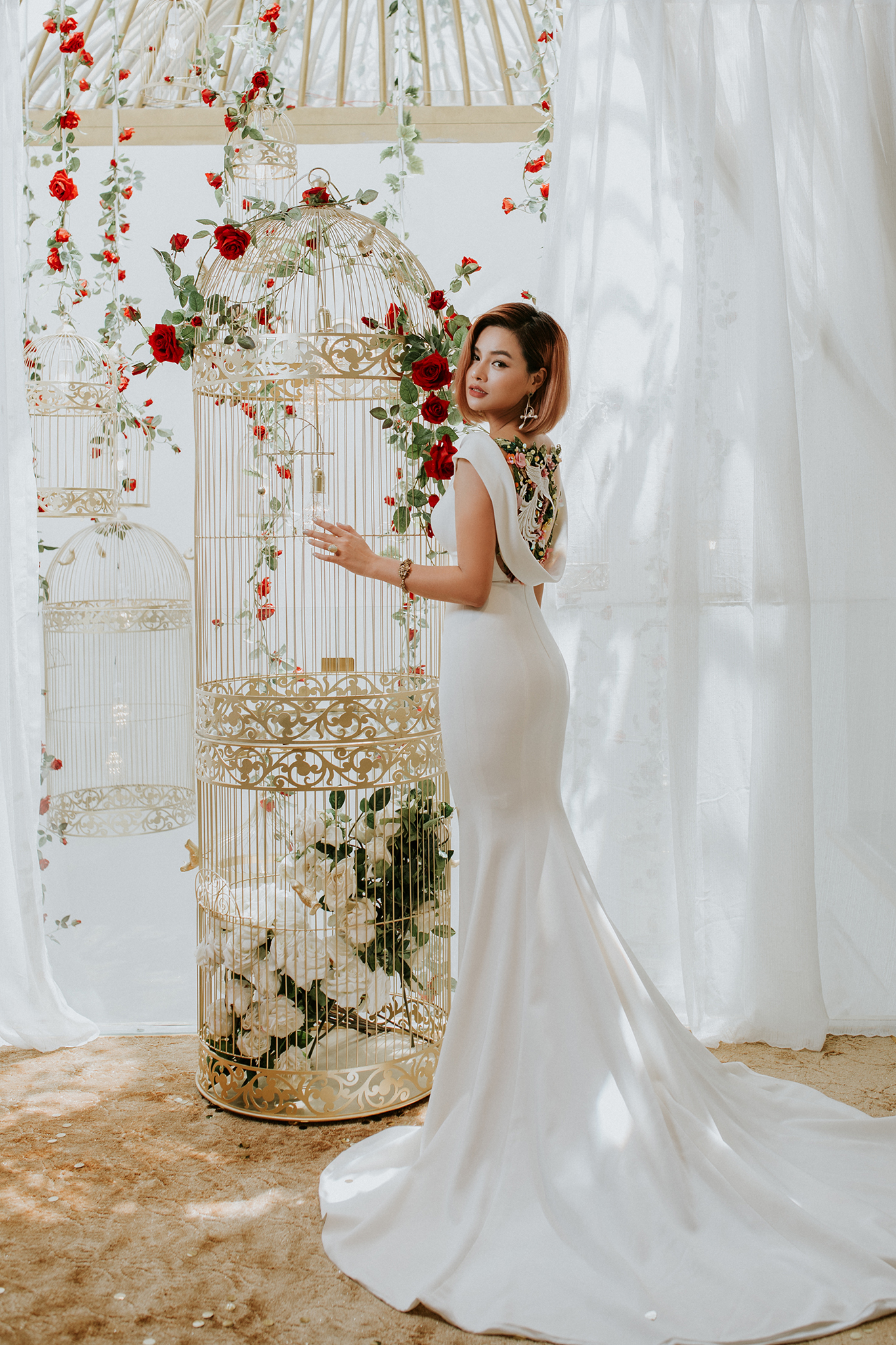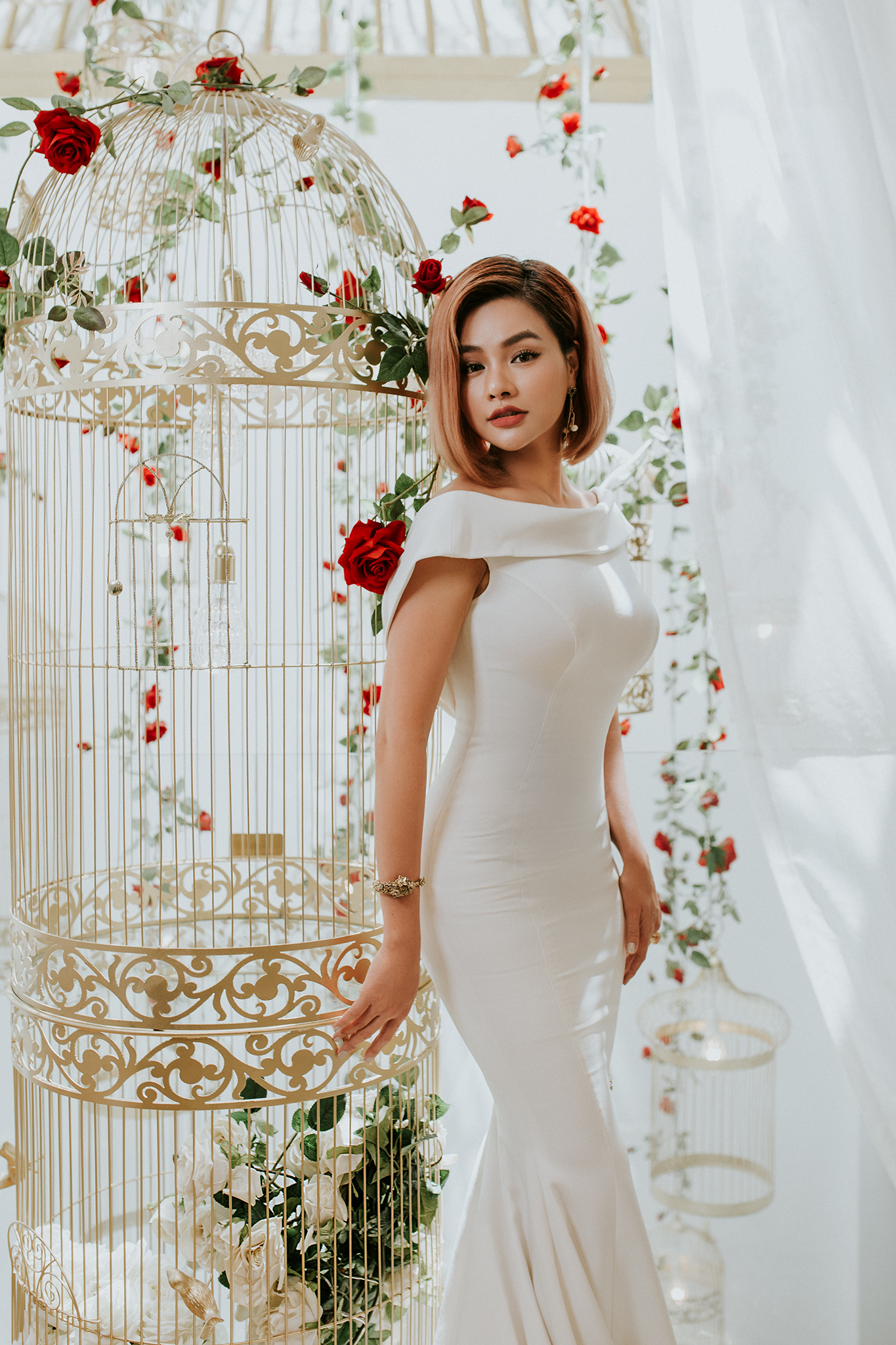 Chiếc váy đuôi cá tối giản với những đường cắt cúp chuyên nghiệp tôn trọn vẻ đẹp hình thể cựu siêu mẫu 1 thời.