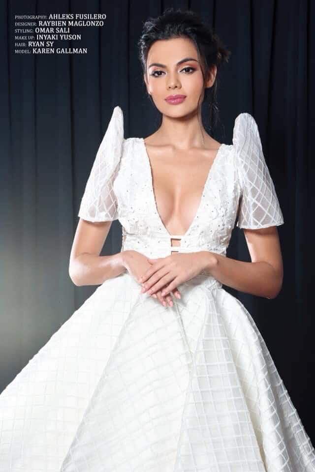 Karen Gallman mang trong mình dòng máu lai giữa Úc và Philippines. Cô đăng quang Hoa hậu Liên lục địa Philippines 2018. Cách đây 6 năm, chân dài 25 tuổi từng đi thi hoa hậu nhưng chỉ lọt vào Top 12. Quay trở lại sau thời gian tập luyện chín muồi, Karen Gallman được đánh giá là ứng cử viên mạnh của nước chủ nhà.
