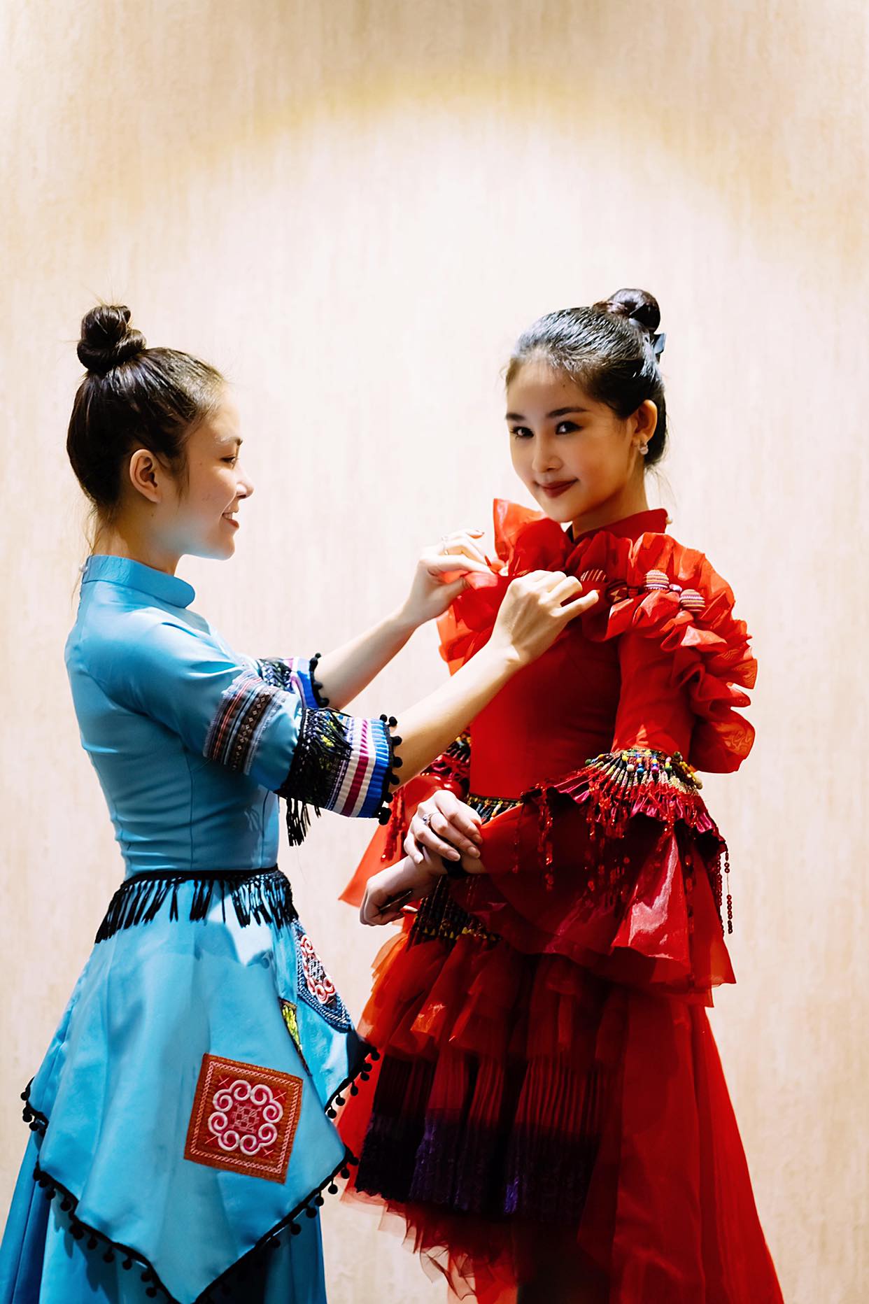 Trong hậu trường fitting, Hoa hậu Áo dài Tuyết Nga cùng Lê Âu Ngân Anh đã có những giờ phút thoải mái, cả hai vui vẻ trò chuyện.