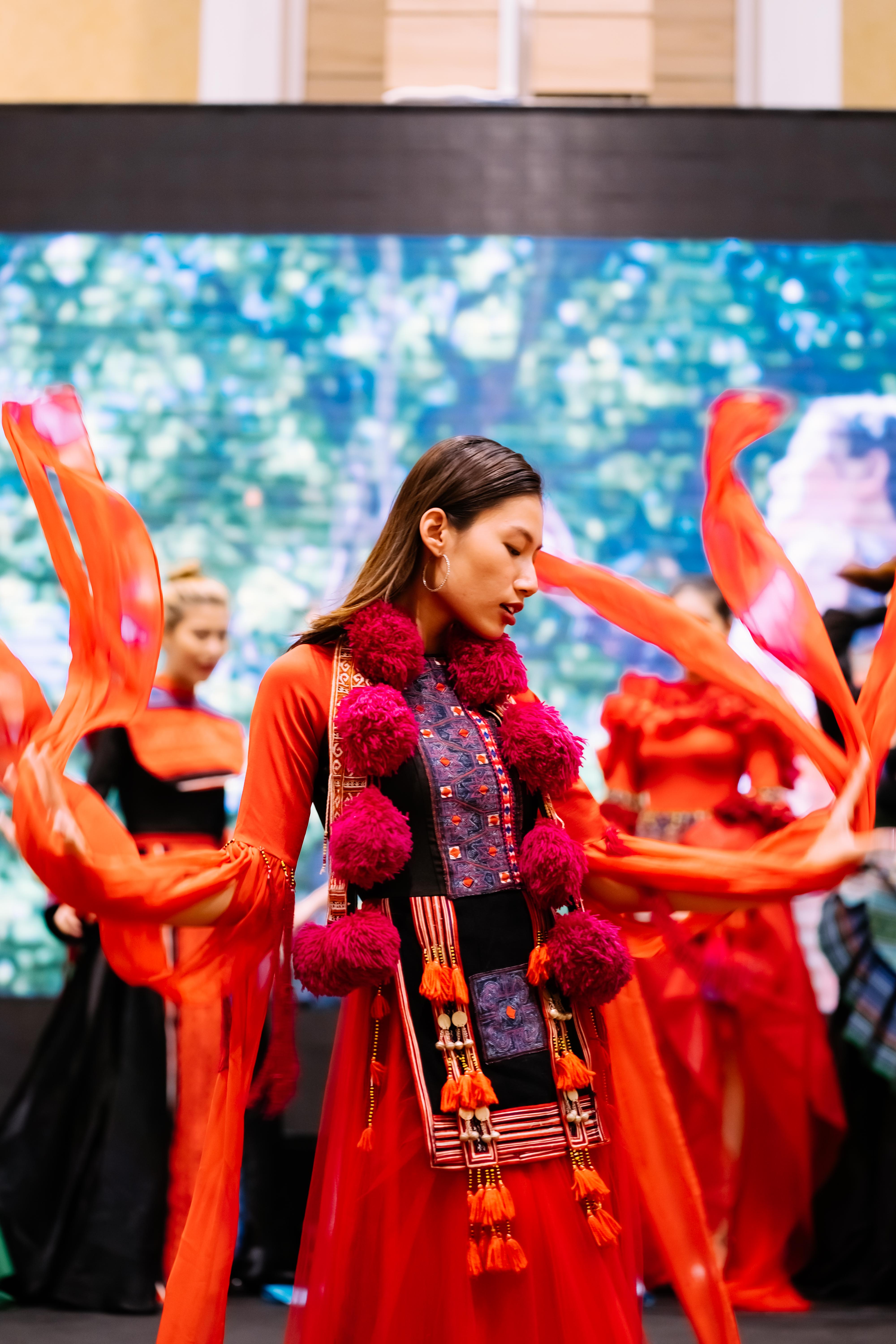 Được biết, các thiết kế trình làng thuộc 2 BST đến từ 2 NTK nổi tiếng: Việt Hùng và Thạch Linh. Nếu NTK Việt Hùng đem đến những sáng tạo lấy cảm hứng từ “tre” - loài thực vật gắn liền với dân tộc, mang nặng câu chuyện đất nước thì NTK trẻ Thạch Linh sẽ đưa người xem đến vùng núi cao Tây Bắc, chìm đắm vào những mảng màu rực rỡ của thổ cẩm nhưng được biến chuyển theo nhịp điệu thời cuộc.
