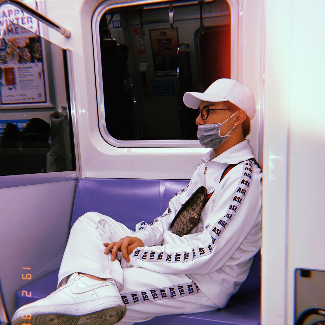 Ca sĩ Erik vẫn trung thành với phong cách unisex cá tính. Anh chàng diện set đồ full white cùng túi đeo chéo Gucci thời thượng. Sneakers từ Nike chính là cách Erik kết lại set đồ du xuân của mình.