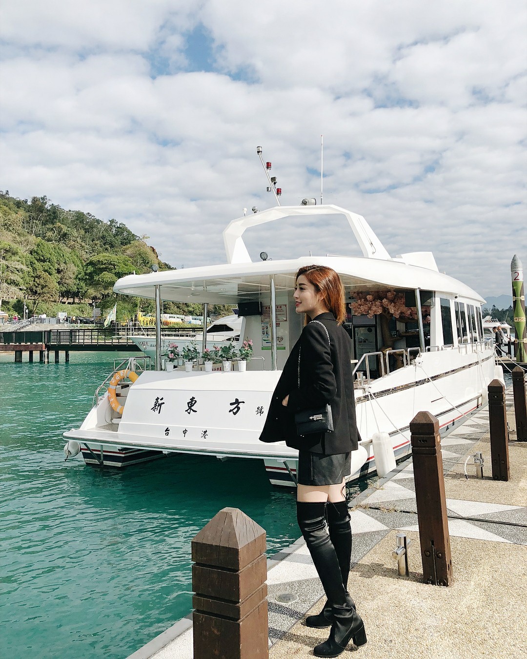 Nếu bạn muốn diện nguyên cây đen nhưng vẫn đầy nữ tính thì hãy học hỏi Á hậu Huyền My. Công thức mix đồ thường gặp của các fashionista Hongkong gồm blazer, mini skirt và boot cao cổ đã được Huyền My thông minh áp dụng cho outfit của mình.
