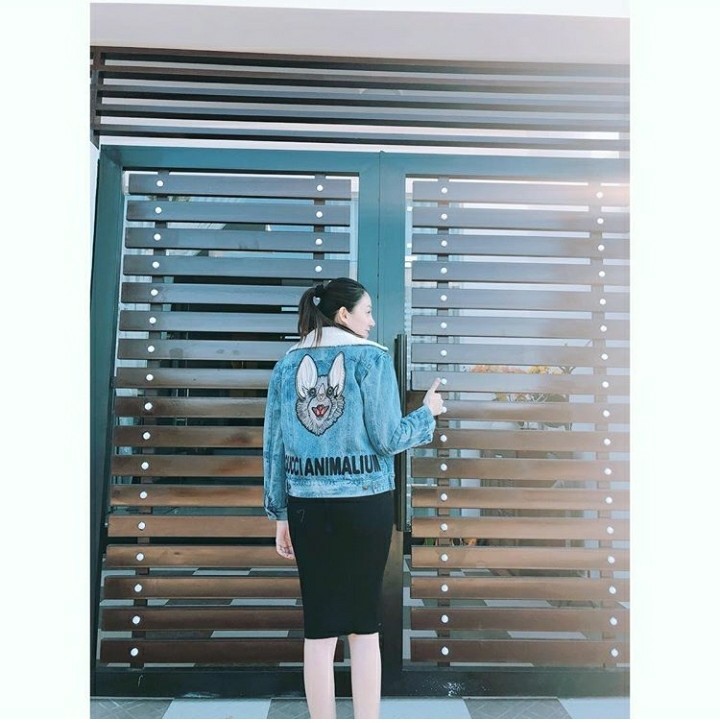 Chân dài diện jacket denim “ngàn đô” từ Gucci, kết hợp với một chiếc váy ôm để khoe “siêu vòng ba”.