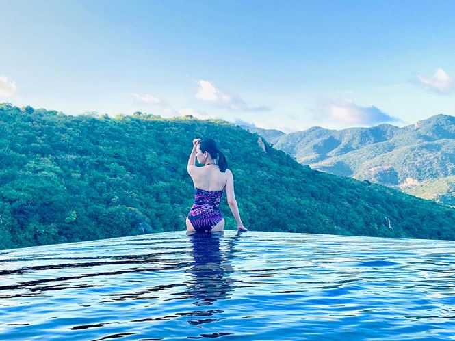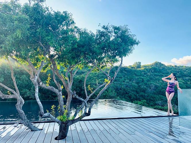Trong chuyến du lịch nghỉ dưỡng, ca sĩ Lệ Quyên đã update trên trang cá nhân của mình loạt ảnh với trang phục đồ bơi khoe trọn vóc dáng nuột nà, nóng bỏng của mình cùng đường cong hút mắt.