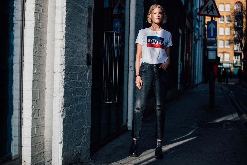 Không cầu kì, kiểu cách, cô nàng này cực cá tính với áo thun Levis's đi kèm với item choker.