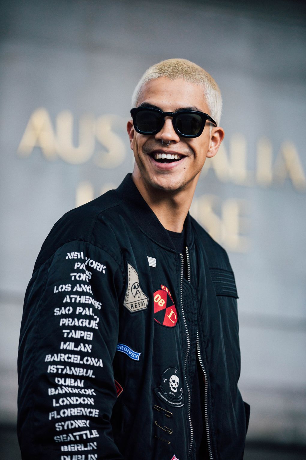 Anh chàng gây chú ý với các phó ảnh nhờ chiếc bomber sticker cực ngầu kèm với chiếc khuyên mũi vô cùng lạ mắt.Tuy nhiên thần thái mới là yếu tố quyết định tất cả.