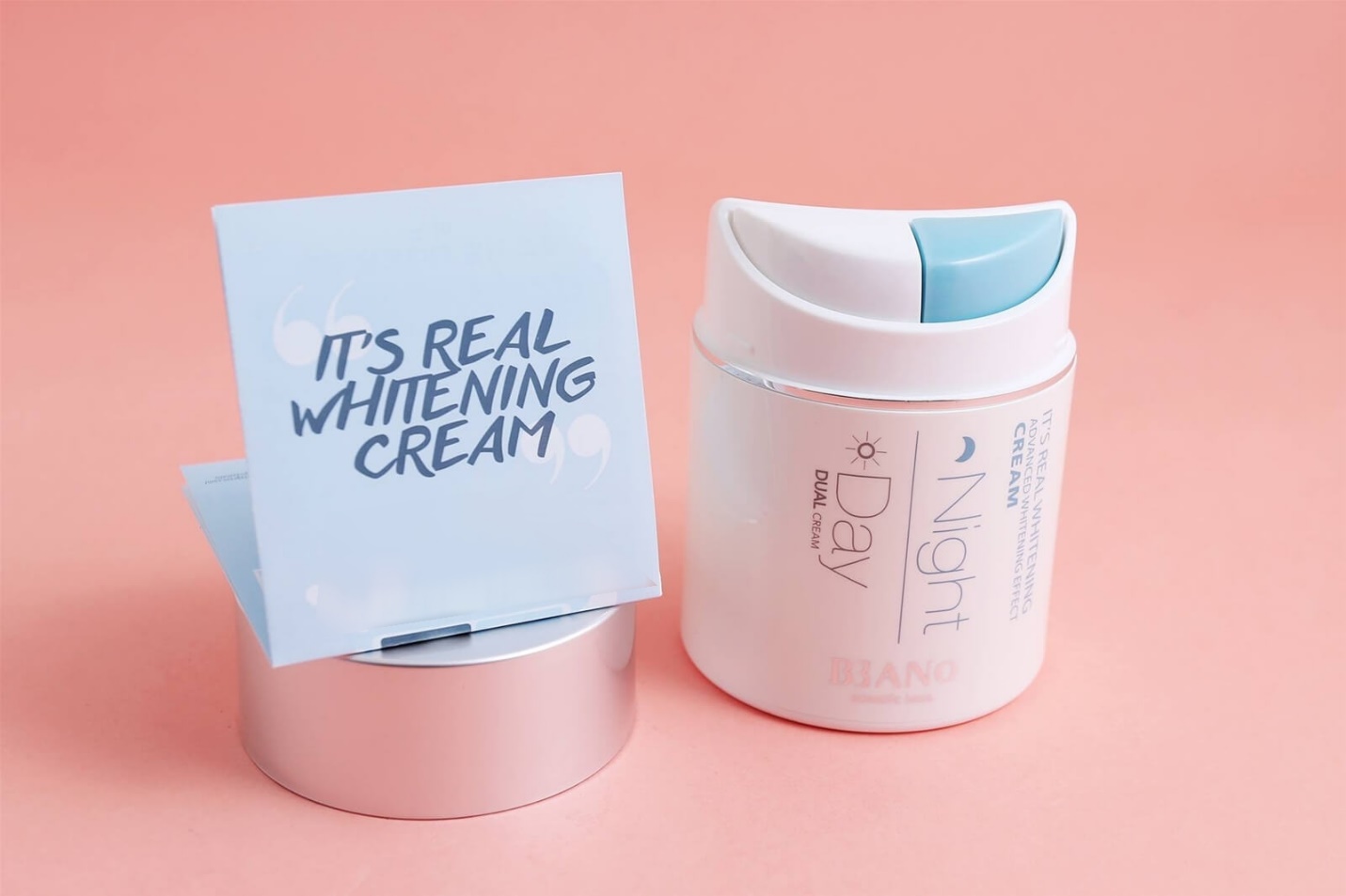 Nếu như các loại kem dưỡng trắng hiện nay chỉ đơn thuần sử dụng vào ban đêm thì kem dưỡng trắng da BANO “IT’S REAL WHITENING CREAM” lại có hai ngăn trong một hũ kem chuyên dùng cho cả ban ngày và ban đêm. Dưỡng trắng da vào ban đêm, bảo vệ triệt để các tác nhân gây hại vào ban ngày. Kem dưỡng trắng da BANO 2 trong 1 đang là một sản phẩm được nhiều beauty blogger và giới trẻ “recommend” tại đất nước này khuyên dùng nếu như muốn sở hữu một làn da trắng hồng và khỏe mạnh.