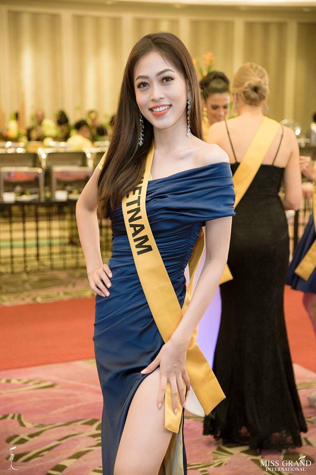 Trong ngày thứ 2 thuộc khuôn khổ vòng chung kết cuộc thi Miss Grand International 2018, Á hậu Bùi Phương Nga xuất hiện với diện mạo quen thuộc khi khoác lên bộ cánh xẻ tà cao bất tận. Những thiết kế được Á hậu mang đi lần này không có sự nổi bật về kiểu dáng, khiến người đẹp dễ dàng bị “nhấn chìm” trước dàn váy áo lộng lẫy của đối thủ.