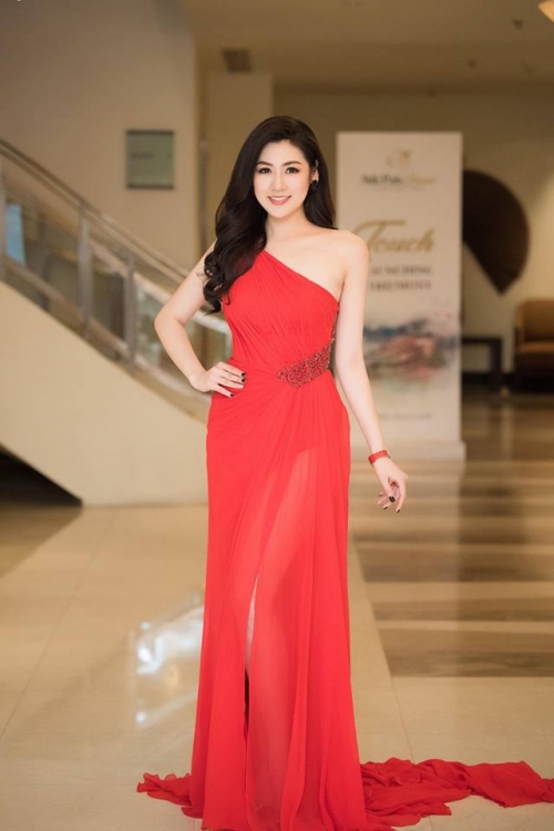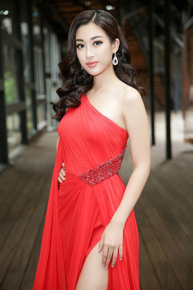 Diện một thiết kế đầm lệch vai với sắc đỏ nổi bật cộng thêm đường xẻ cao hút mắt, dường như tất cả lợi thế sắc vóc của Đỗ Mỹ Linh không chỉ được phô diễn một cách khéo léo mà còn thăng hoa hơn gấp bội.