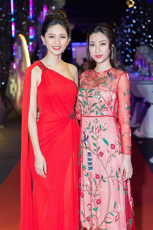 Cùng khoe sắc vóc hoàn hảo rạng ngời, Hoa hậu Đỗ Mỹ Linh cũng không hề kém cạnh người bạn thân thiết là á hậu Thanh Tú.