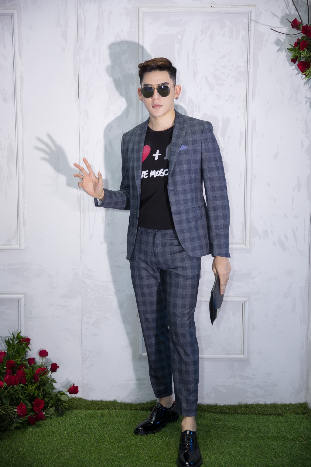 Ca sĩ Minh Trung diện vest lịch lãm.