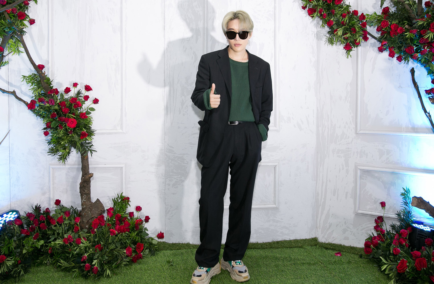 Ca sĩ S.T lựa chọn bộ vest sọc kẻ. Sau nhiều năm ca hát, mới đây, anh lấn sân lĩnh vực điện ảnh khi tham gia phim “Cô Ba Sài Gòn”.