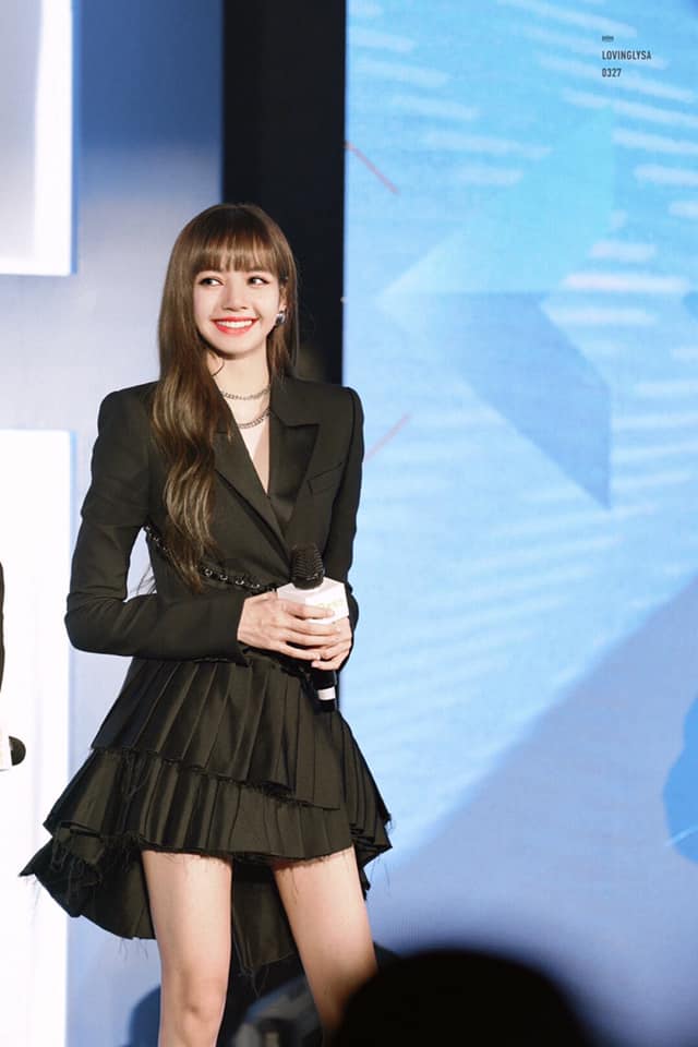Visual đỉnh cao của Lisa Black Pink trong chiếc váy blazer xếp ly đen tôn lên dáng vóc chuẩn của cô nàng