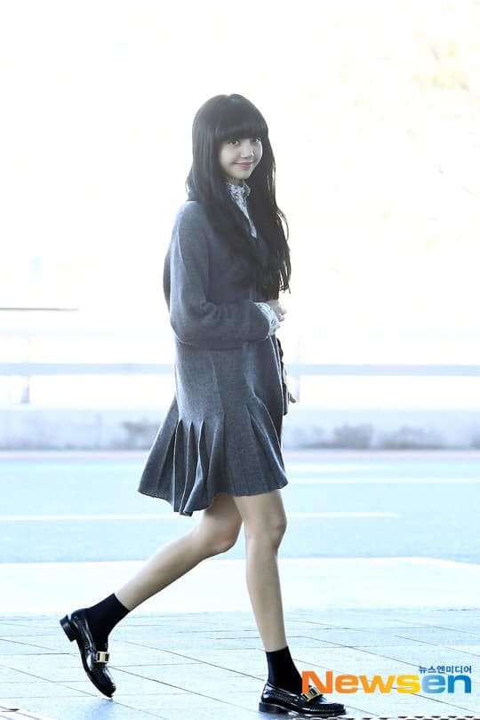 Lisa Black Pink trong cây đồ nữ tính xuất hiện tại sân bay Incheon chuẩn bị lên đường sang Ý tham dự show Prada