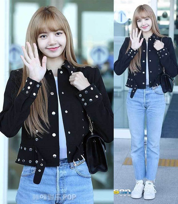 Áo thun, quần jeans cùng áo khoác ngoài và giày thể thao thường là combo mà Lisa mặc đi đến sân bay