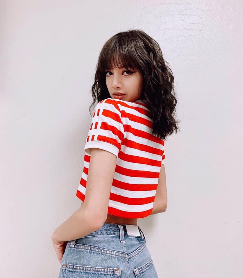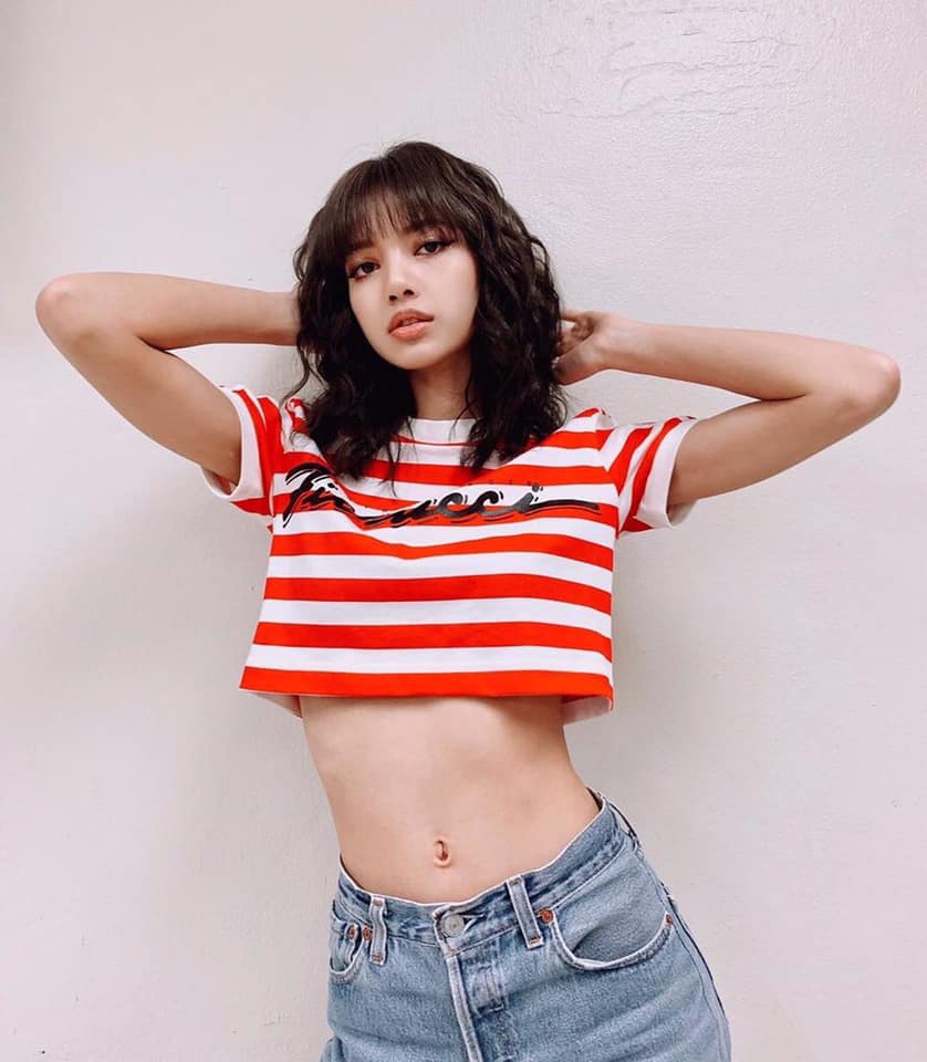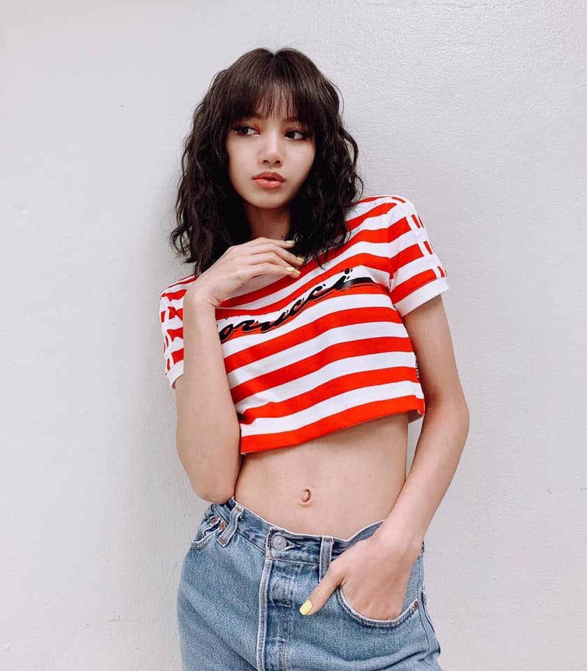 Trong chiếc áo thun croptop sọc đỏ đầy nổi bật Lisa không ngần ngại tạo dáng để khoe khéo chiếc eo thon mà bất cứ cô gái nào cũng ao ước