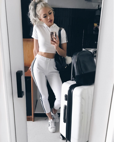 Amy Pham thể hiện mình là một cô nàng đa phong cách khi không ngại diện đủ mọi style từ nữ tính tới cá tính. Thậm chí là sporty như thế này.