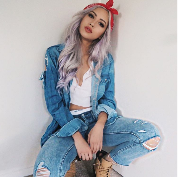 Một chút bụi phủi với phong cách denim on denim.
