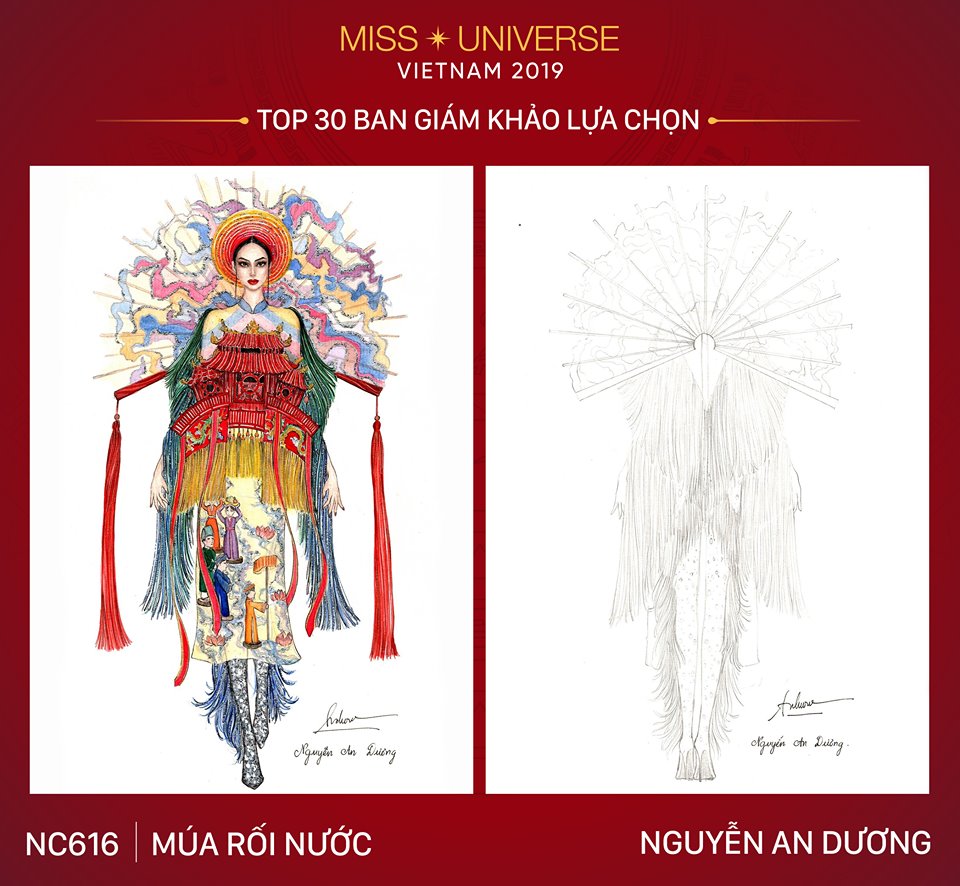 Ngay sau khi top 5 mẫu thiết kế có lượt bình chọn cao nhất được công bố đi tiếp thì mới đây, ban tổ chức đã công bố top 30 mẫu thiết kế do giám khảo bình chọn. Từ danh sách TOP 700, Ban giám khảo đã có buổi làm việc căng thẳng để lựa chọn top 30 thiết kế National Costume xuất sắc nhất dành cho Hoàng Thùy tại Miss Universe 2019.