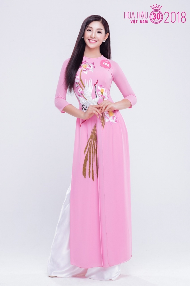 Tham gia Hoa hậu Việt Nam 2018, mỹ nhân Hà thành được trao danh hiệu “Người đẹp Áo dài”. Trong tà áo dài truyền thống, chân dài họ Lê gây được chú ý bởi thần thái tự tin và nụ cười rạng rỡ.