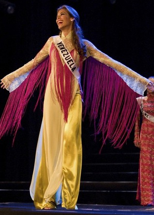 Dayana Mendoza trong phần trình diễn áo dài ở kỳ Miss Universe 2008.