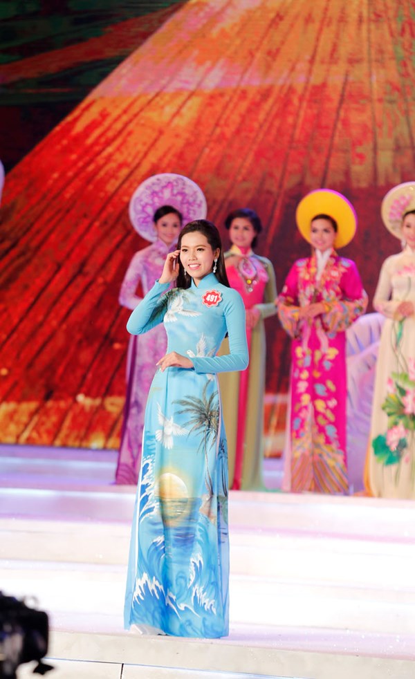 Gương mặt thuần Việt, vóc dáng mảnh mai chính là ưu điểm giúp cô được trao danh hiệu “Người đẹp Áo dài”. Sau đó cô lọt top 10 chung cuộc.