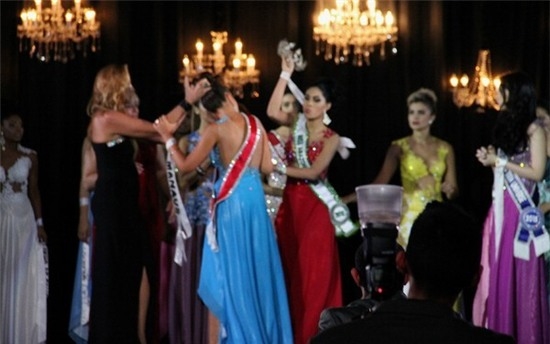 Sự cố giở khóc giở cười kia khiến cả 3 người đẹp vô cùng bối rối. Cựu Hoa hậu phải gỡ chiếc vương miện từ người đồng hương trao lại cho chủ nhân thật sự.