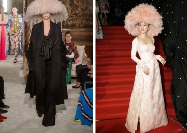 Chiếc mũ lông to cả mét tuy giúp Angela Phương Trinh thêm phần nổi bật, nhưng với việc đạo nhái ý tưởng trắng trợn, cô nàng cũng khó lòng được xem là đẹp.