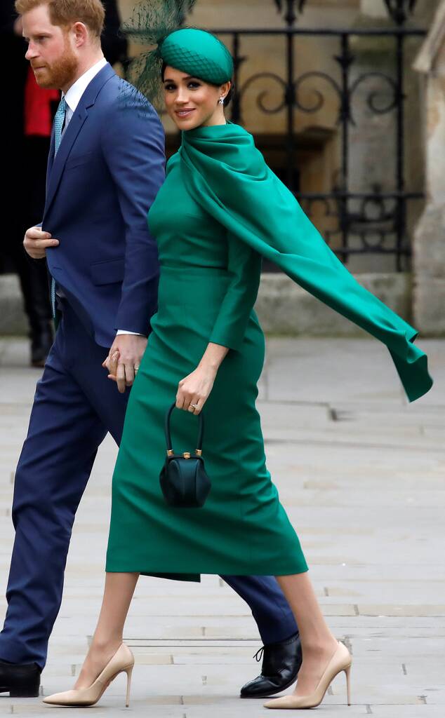 Đây là bộ váy xanh kín đáo gây tranh cãi của Nữ Công tước xứ Sussex khi xuất hiện tại nơi tôn nghiêm như Tu viện Westminster. Thiết kế đến từ NTK Emilia Wickstead màu xanh ngợp tràn thế nhưng vì diện nội y bên trong bị lộ mồn một ra ngoài nên cô bị cư dân mạng chê bai