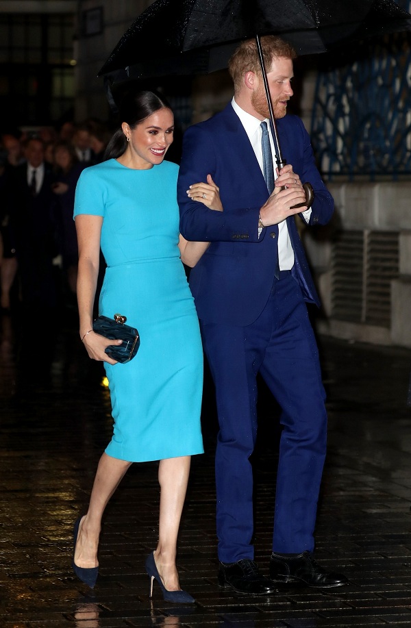 Meghan Markle diện kiểu váy bút chì ôm sát người màu xanh pastel ngọt ngào đến từ NTK Victoria Beckham, sau vài tiếng khi bức ảnh này phủ sóng mạng xã hội kiểu váy hơn 43 triệu đồng này đã sold out toàn tập trên website