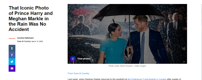 Thậm chí, bức ảnh cả hai người dạo bước trong mưa được khán giả khen là tấm ảnh kinh điển, đáng để ghi nhớ trước khi cả Meghan và Hoàng tử Harry rời khỏi hàng ngũ Hoàng Gia Anh