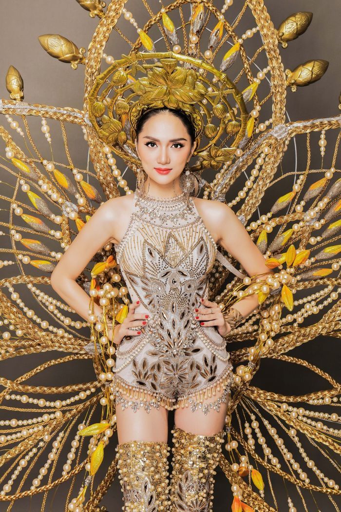 Được biết bộ trang phục lấy ý tưởng từ làng nghề đan tre nứa truyền thống, kết hợp biểu tượng quốc hoa của Việt Nam - đóa sen. Nhờ bộ cánh này Hương Giang đã nhận được vô số lời khen “có cánh” của công chúng trong nước và quốc tế.