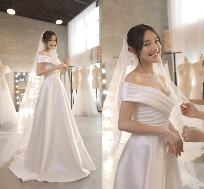 Tiếp đó là bộ váy trắng, trễ vai lụa là Nhã Phương khiến các fans ngẩn ngơ trước hình ảnh vô cùng ngọt ngào này