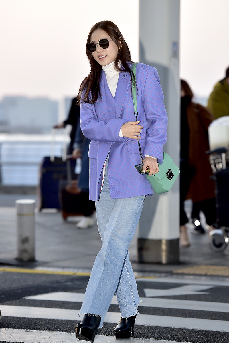 Vào ngày 14/7 vừa qua, Min Hyo Rin rời khỏi sân bay quốc tế Incheon để tham dự New York Fashion Week 2017. Style sân bay của Min Hyo Rin luôn kín đáo và trung tính. Túi xách Eva của Samantha Thavasa và Jacket Denim với tông màu pastel khiến người đẹp trở nên duyên dáng vô cùng.