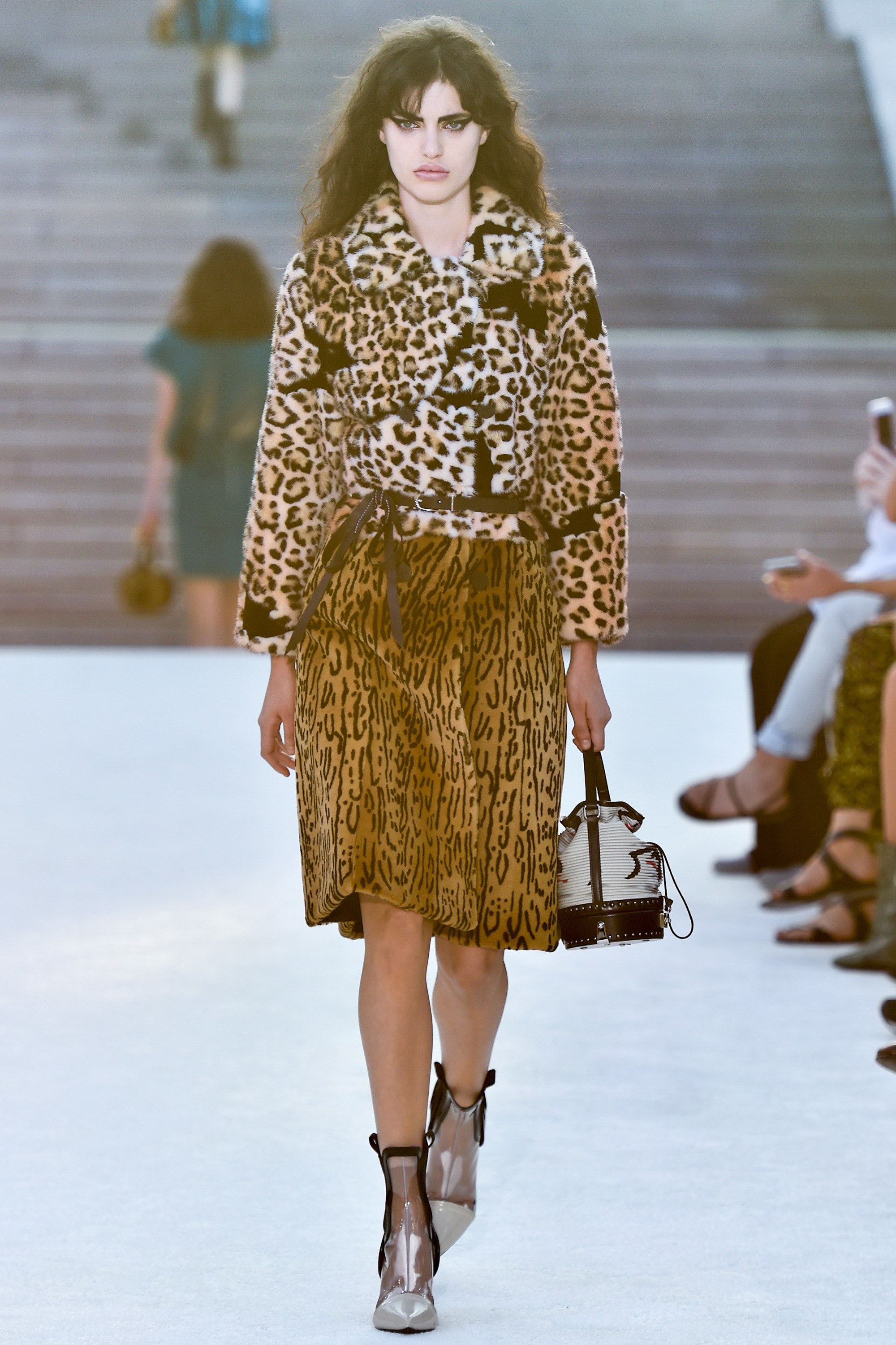 Giải phóng cho sự gò bó da thịt của phụ nữ, những chiếc váy may bồng bềnh thướt tha chấm đất phá cách lạ lẫm như đặt một câu hỏi lớn cho việc định hình phong cách của Louis Vuitton tại bộ sưu tập năm nay.