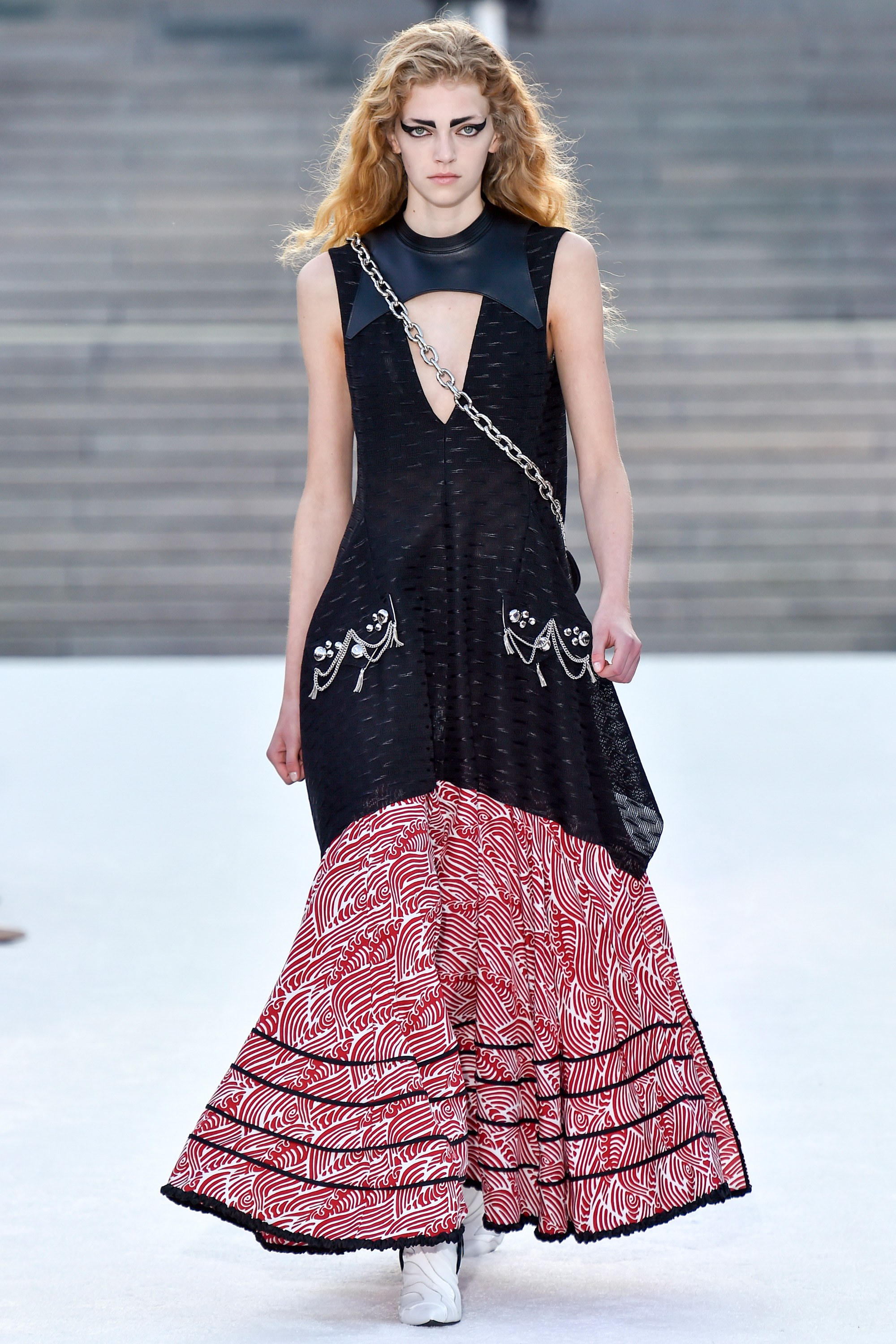 Lấy vẻ hùng dũng, phong thái uy nghi của các dũng sĩ Samurai làm điểm nhấn, Louis Vuitton đã không ngần ngại gửi gắm tinh thần ấy vào trong những bộ đầm dài đầy kiểu cách và cầu kỳ.