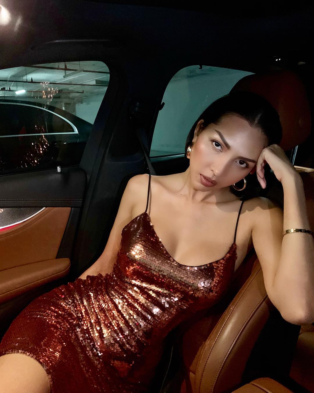 Thả dáng cùng váy hai dây ngắn, chất liệu sequin, người đẹp Minh Triệu trông nóng bỏng, quyến rũ hết mức.