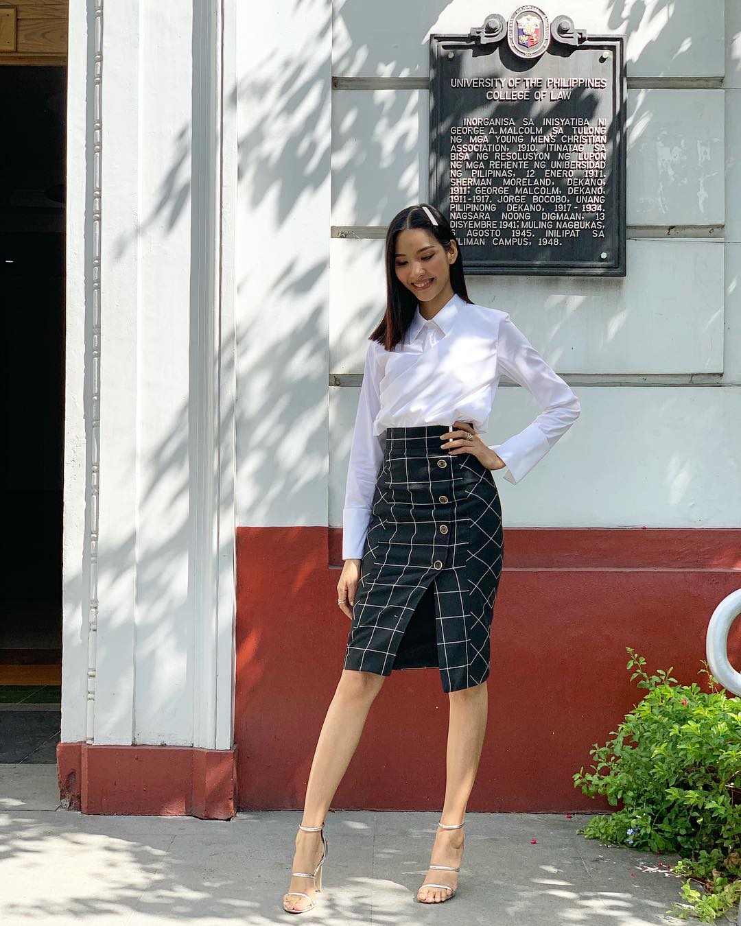 Hoa hậu Tiểu Vy thể hiện sự nhẹ nhàng nhưng vẫn mang chút gợi cảm khi diện độc chiếc áo phom rộng theo “style giấu quần”.